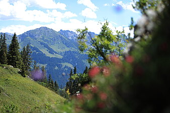 Im Ortsteil Bödmen in Mittelberg, sind die höchsten Berge so nah wie sonst nirgendwo im Kleinwalsertal. Das bedeutet Ideale Bedingungen für Bergwanderer, Biker und Bergsportler.